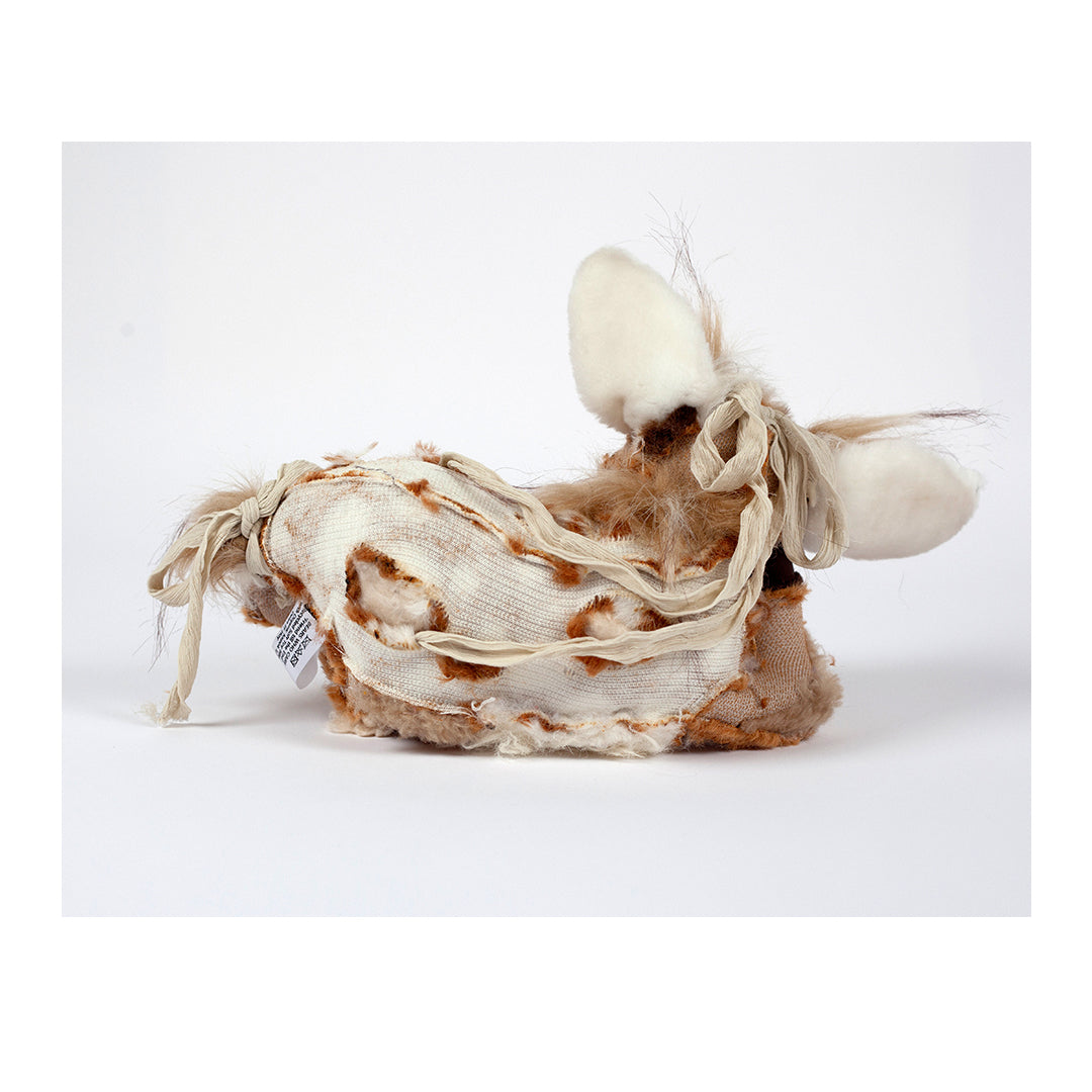A heart-tugging sculpture made from ‘objet trouvé’ of discarded teddy bears found discarded outside charity shops, in Dean’s words ‘with broken juvenile limbs, Morvern the fawn curls into herself crying, no one there to tend her wounds’.