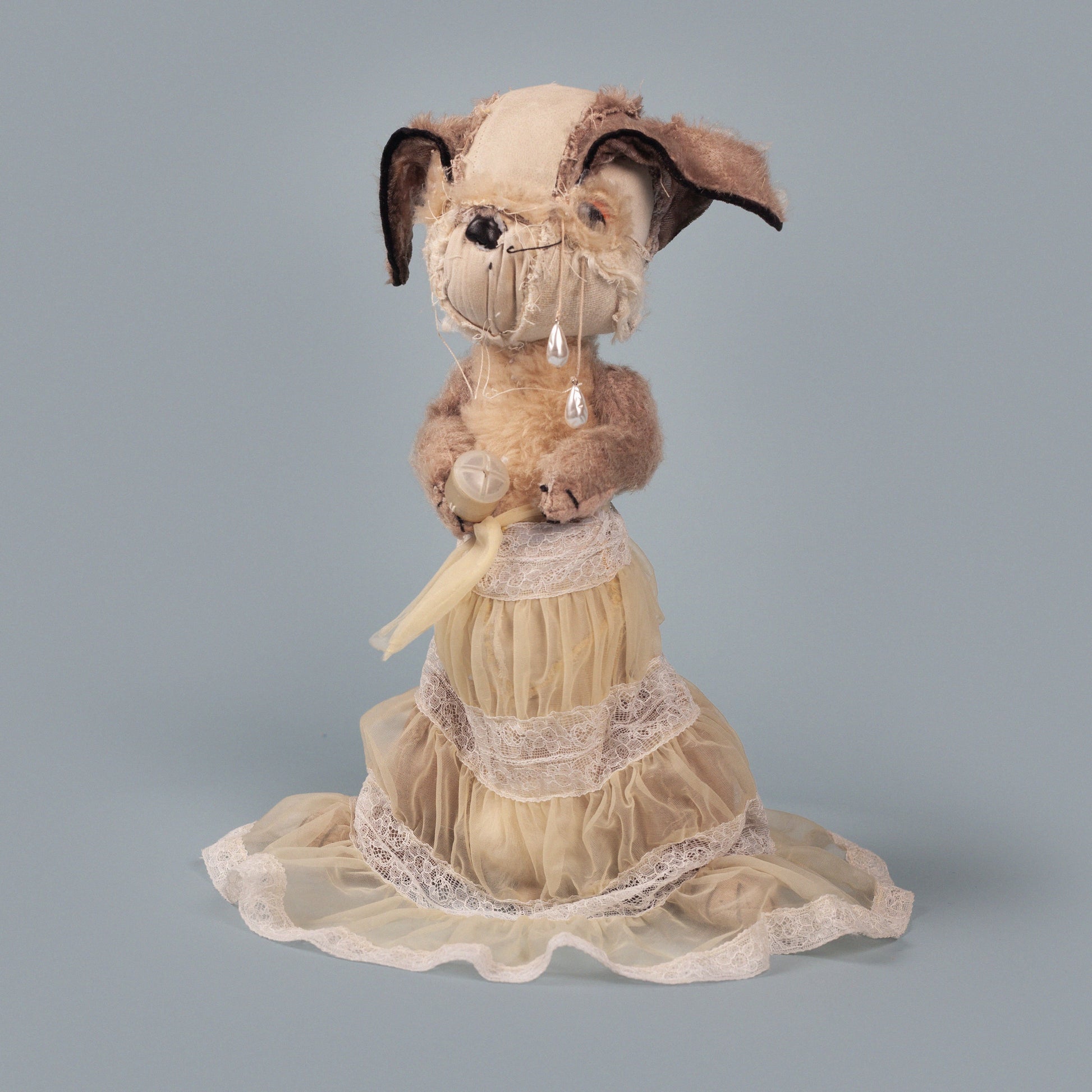 Soft toy, organic kapok, glass pearl tears, satin ribbon, silk roses, bandages.