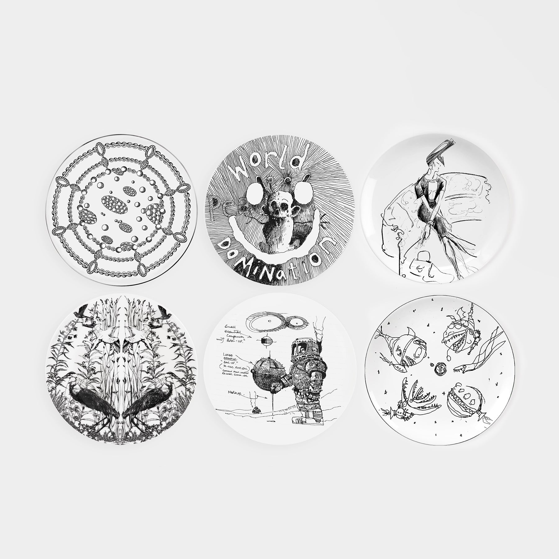 Representing Art, Jewellery, Fashion and Film, these unique plates have been designed by leading figures Tim Burton, Alexander McQueen, Daniel Roseberry for Schiaparelli, Sir Ridley Scott, Francesca Amfitheatrof & Jake Chapman