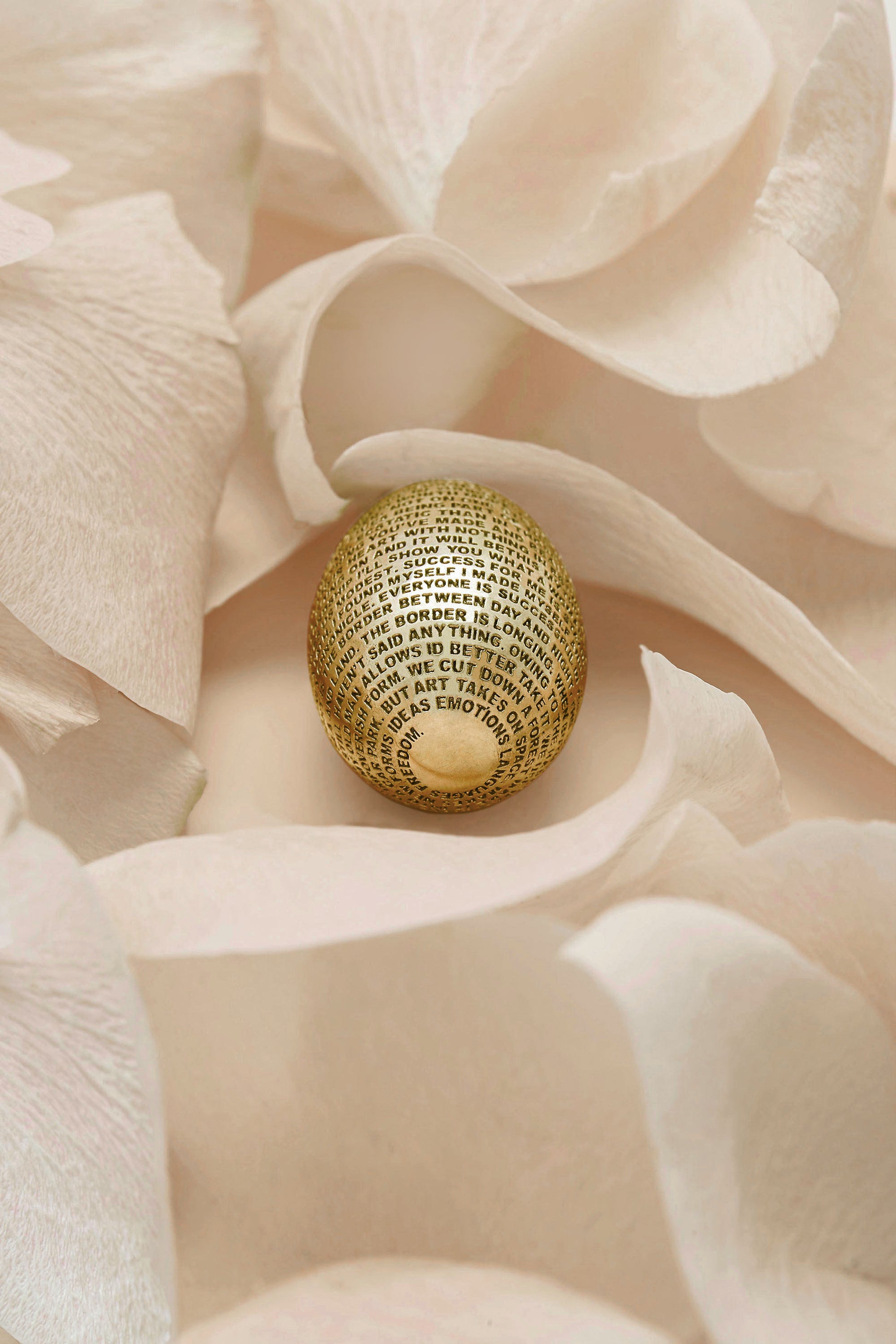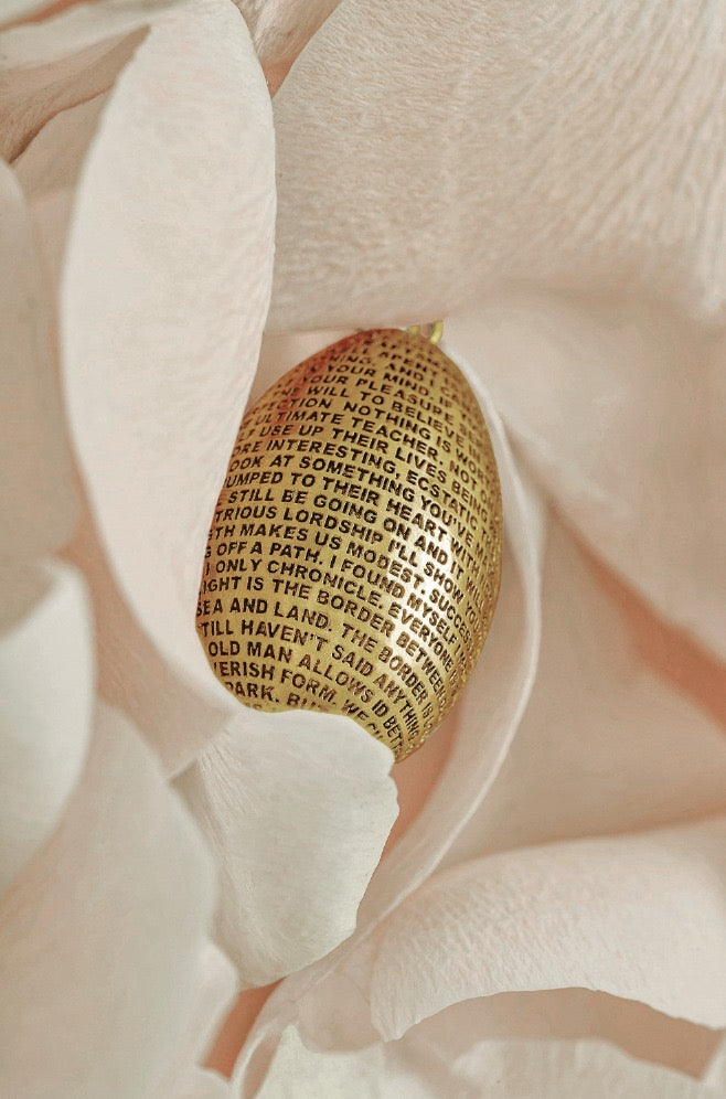 Jet McQuiston’s Vital Signs collection is inspired by her Philosophy BA and interest in semiotics, the study of signs, and how words function as things/ideas and have the power to not just communicate, but also influence our perceptions, thoughts and behaviour. Celebrating iconic artists, musicians and philosophers from the past 5 centuries these jewels act as tiny power totems for the wearer.