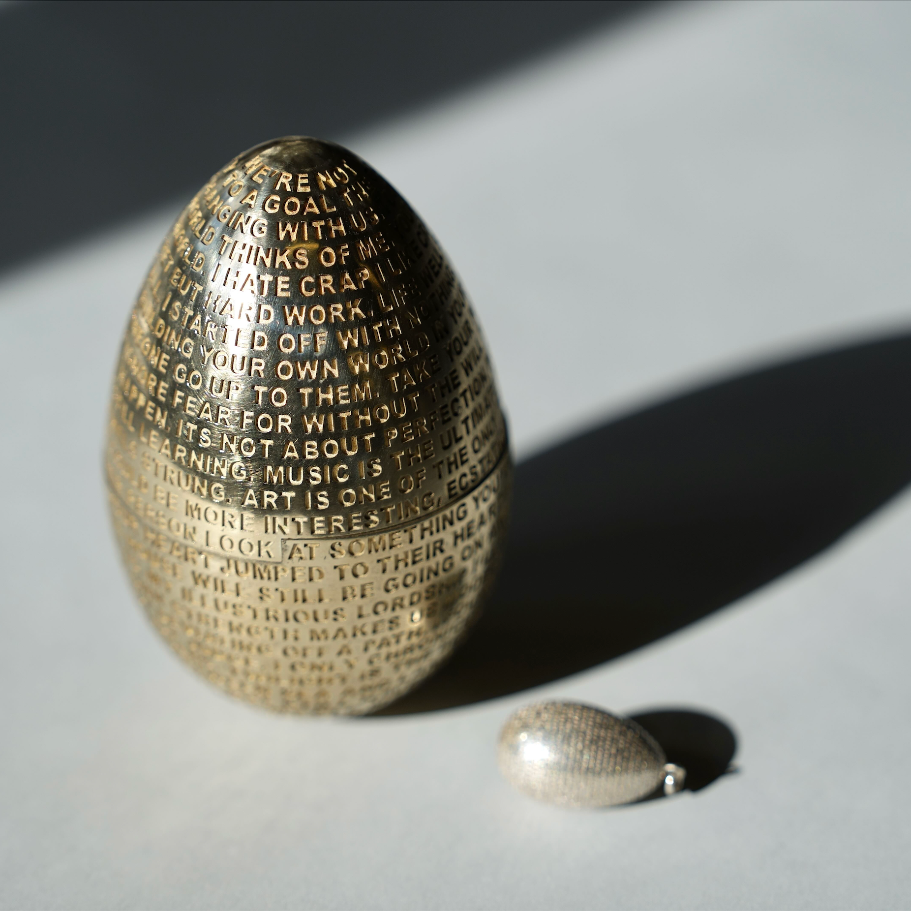 Mythical House of Inspiration Pendant with its Objet d’Art ‘Egg Box’. A totem to incite power, motivation and creativity, the Mythical House of Inspiration pendant features inspiring quotes by 30 artists of the past 5 centuries who have persisted, thrived in the face of adversity and maintained humility in success.