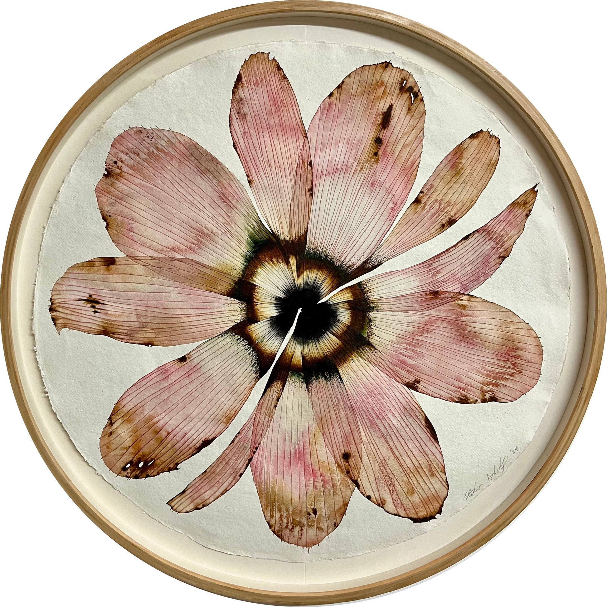 Stephen’s work is led by reflection from his environments; the people around him, their relationships and shared experience. Frequently exploring themes of nature, community, and ritual, he uses a variety of inks on paper to hand-paint his flowers on Indian cotton rag paper.